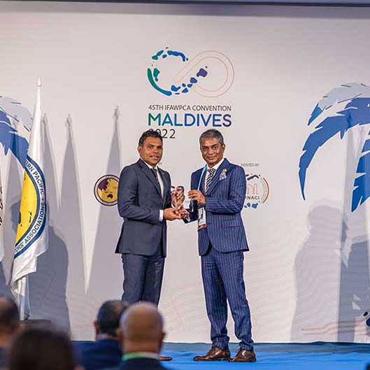 To extend his knowledge and experience to help the construction industry he has been one of the key people in the Maldives National Association for Construction Industry –MNACI, and has served as MNACI’s president for over 6 tenures combined. On October 12th 2021 he was re-elected as the president of MNACI. His effort was one of the reasons why Maldives was accepted into the International Federation of Asian and Western Pacific Contractors’ Associations-IFAWPCA and he is currently serving as their President after taking his oath as the President of IFAWPCA on November 2018. Additionally he is also the President of National Federation of Maldivian Employers-NFME.